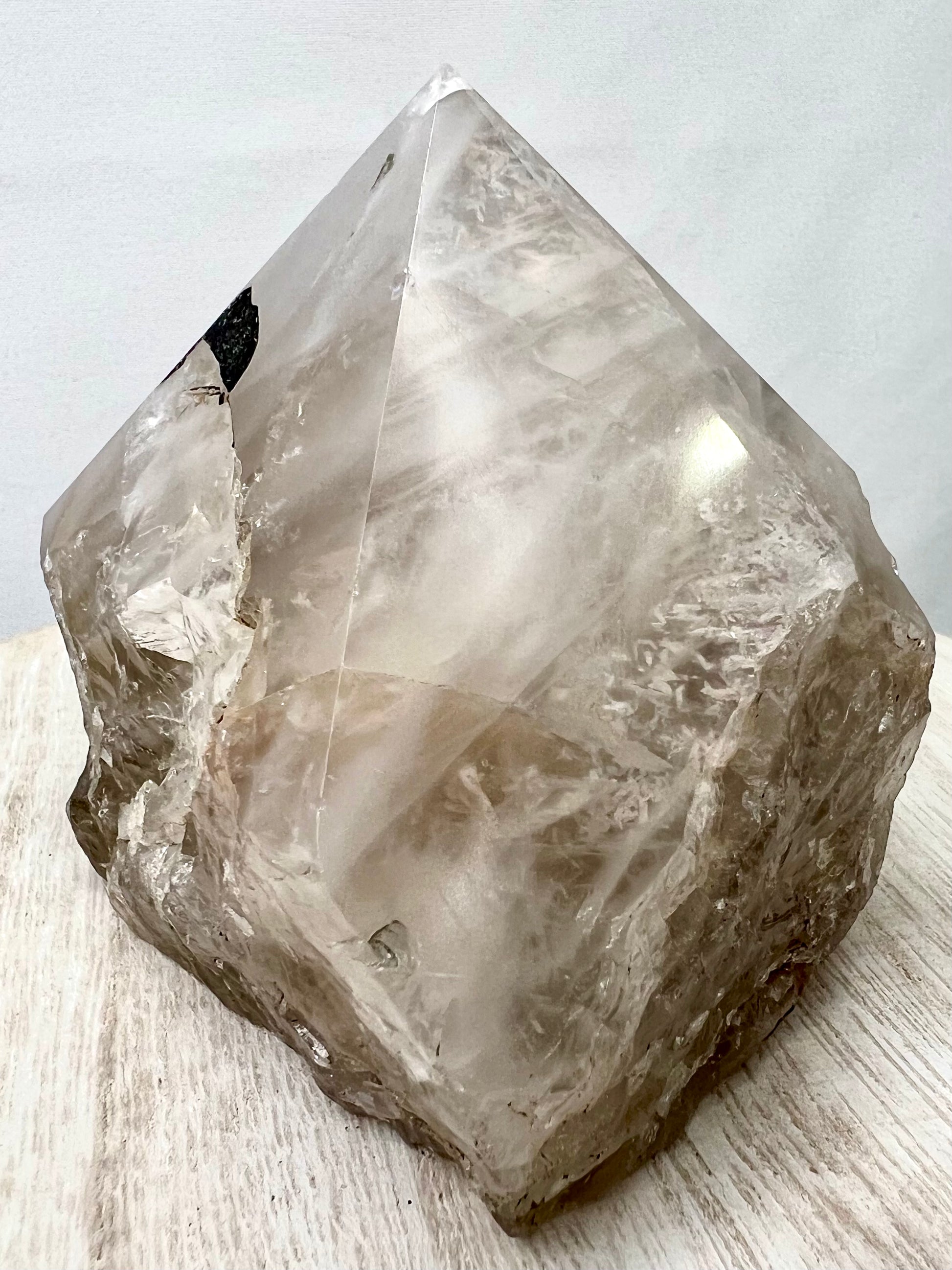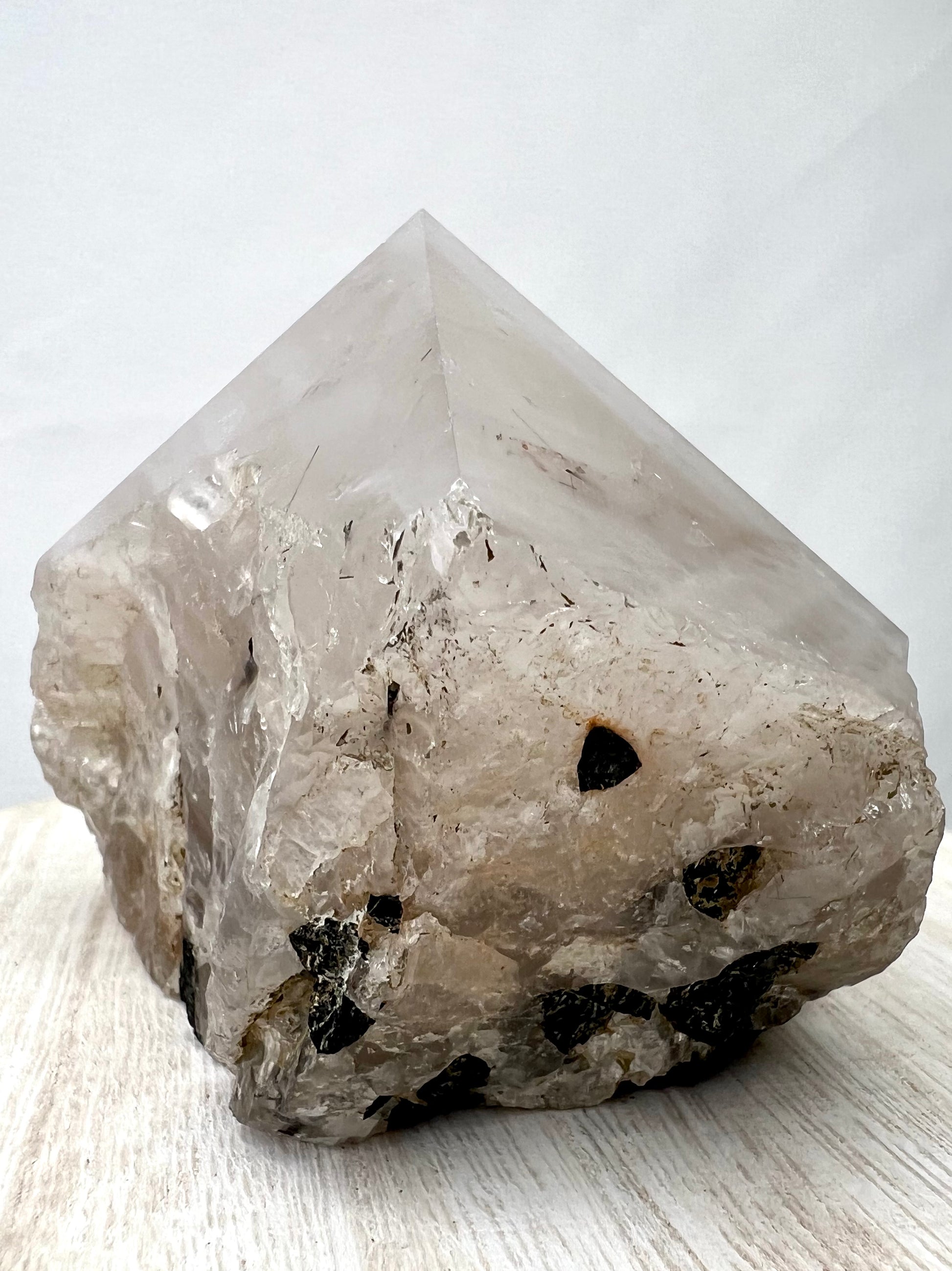 Tourmaline Quartz is a distinctive mineral featuring Black Tourmaline needles nestled within a Quartz structure // It channels energies of enlightenment & deepens understanding of the physical realm // This stone rejuvenates the physical body while dispelling negative thoughts & ideas from the mind // The Quartz amplifies this effect, elevating consciousness & mental clarity // With Tourmaline activating the Root Chakra, it fosters a connection between body, mind & Mother Earth.