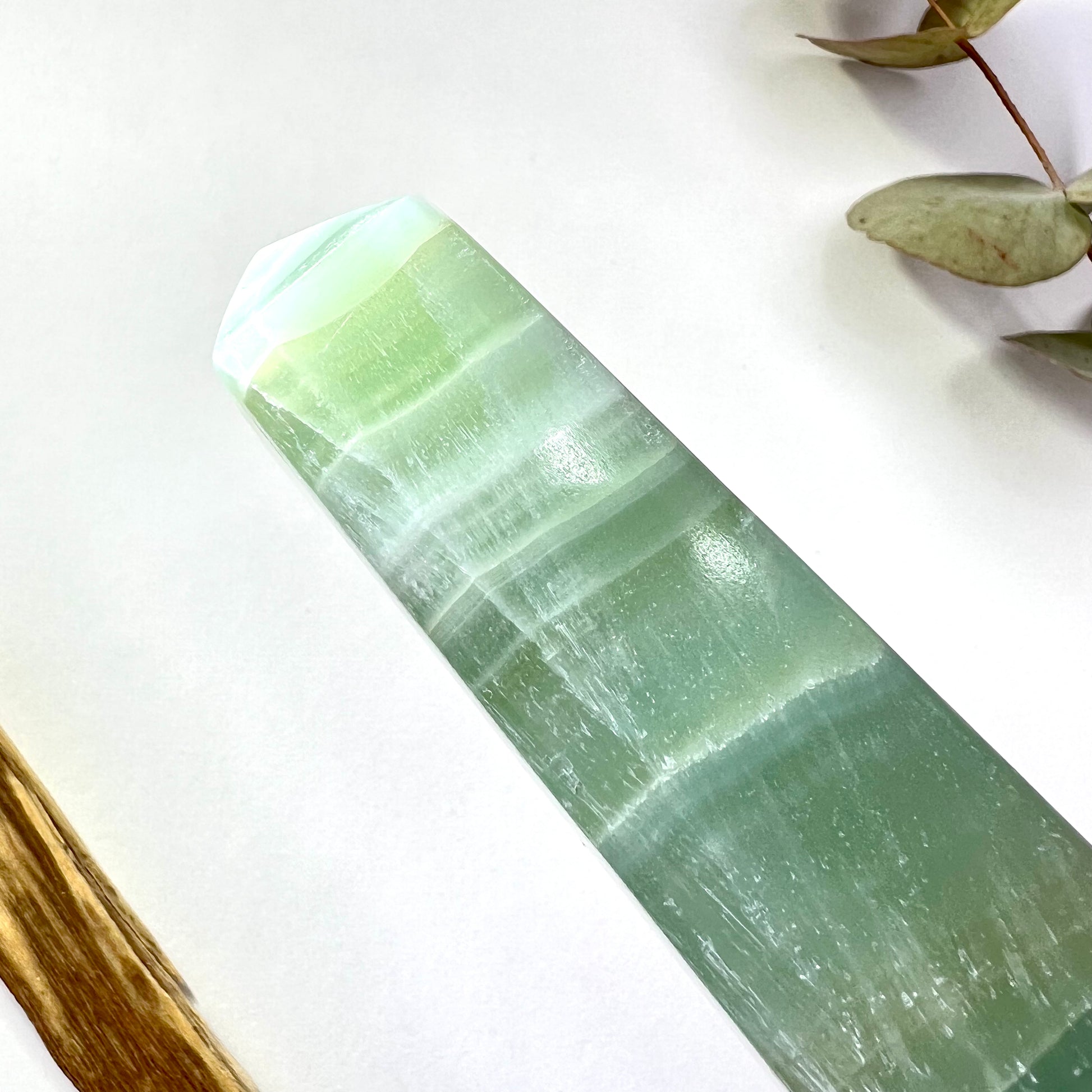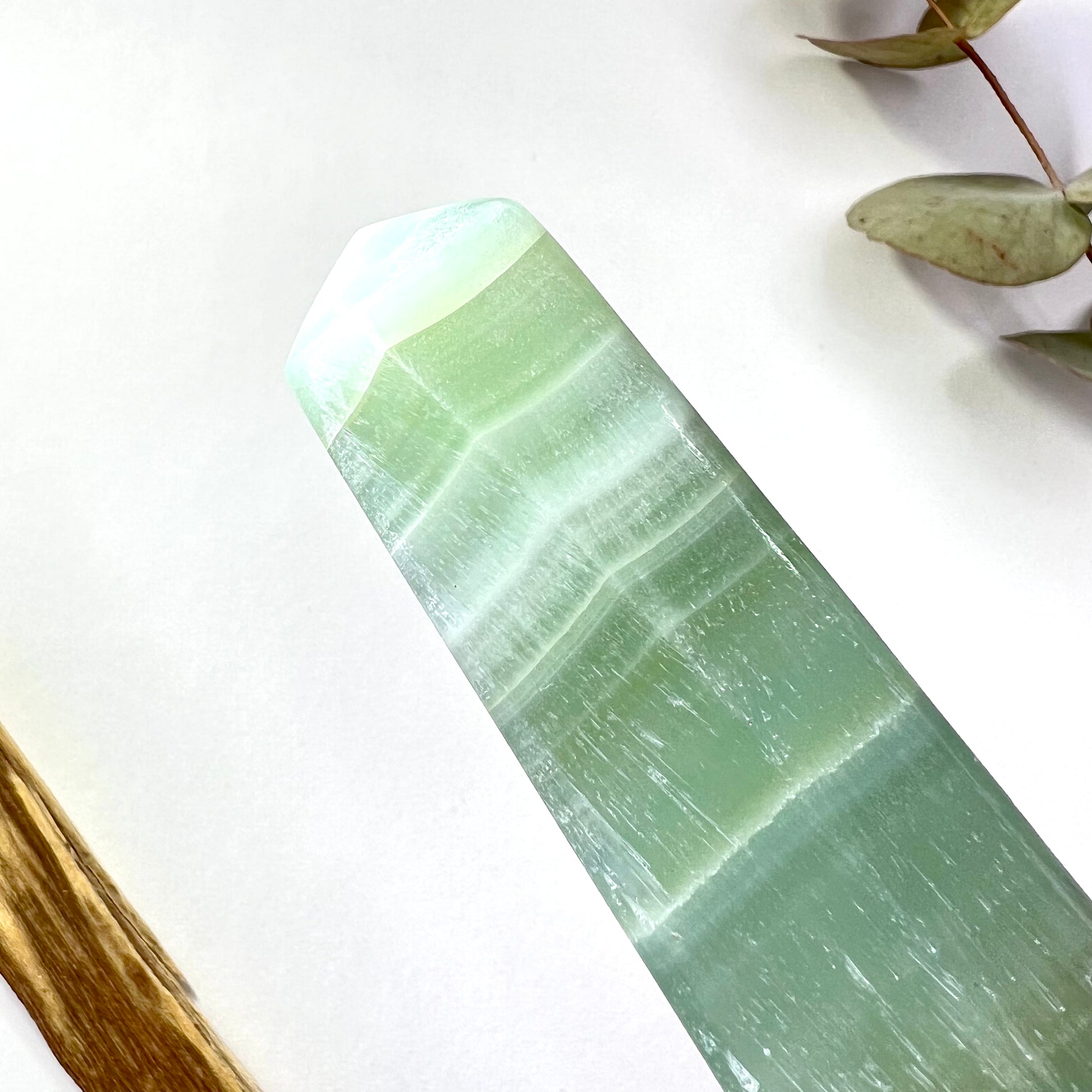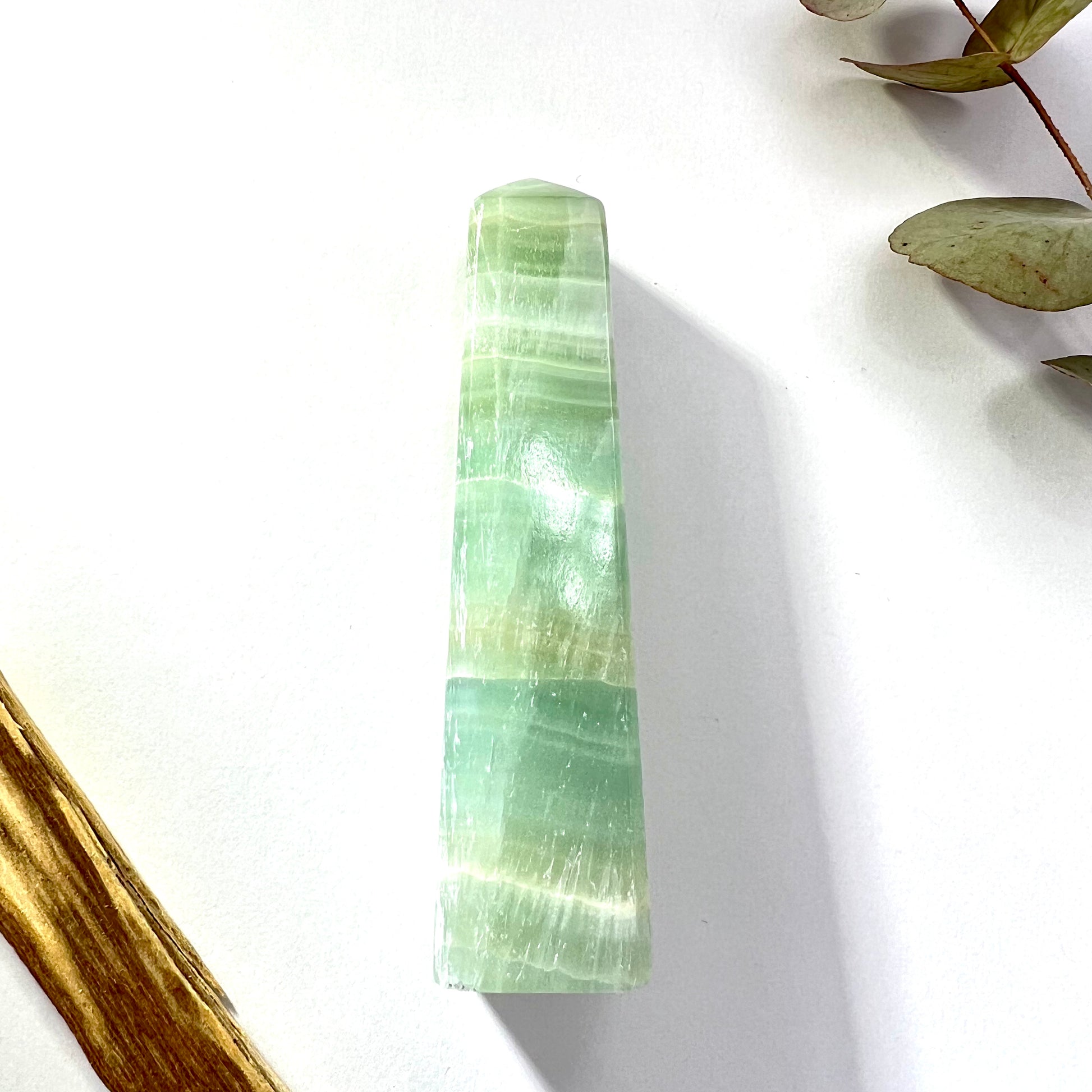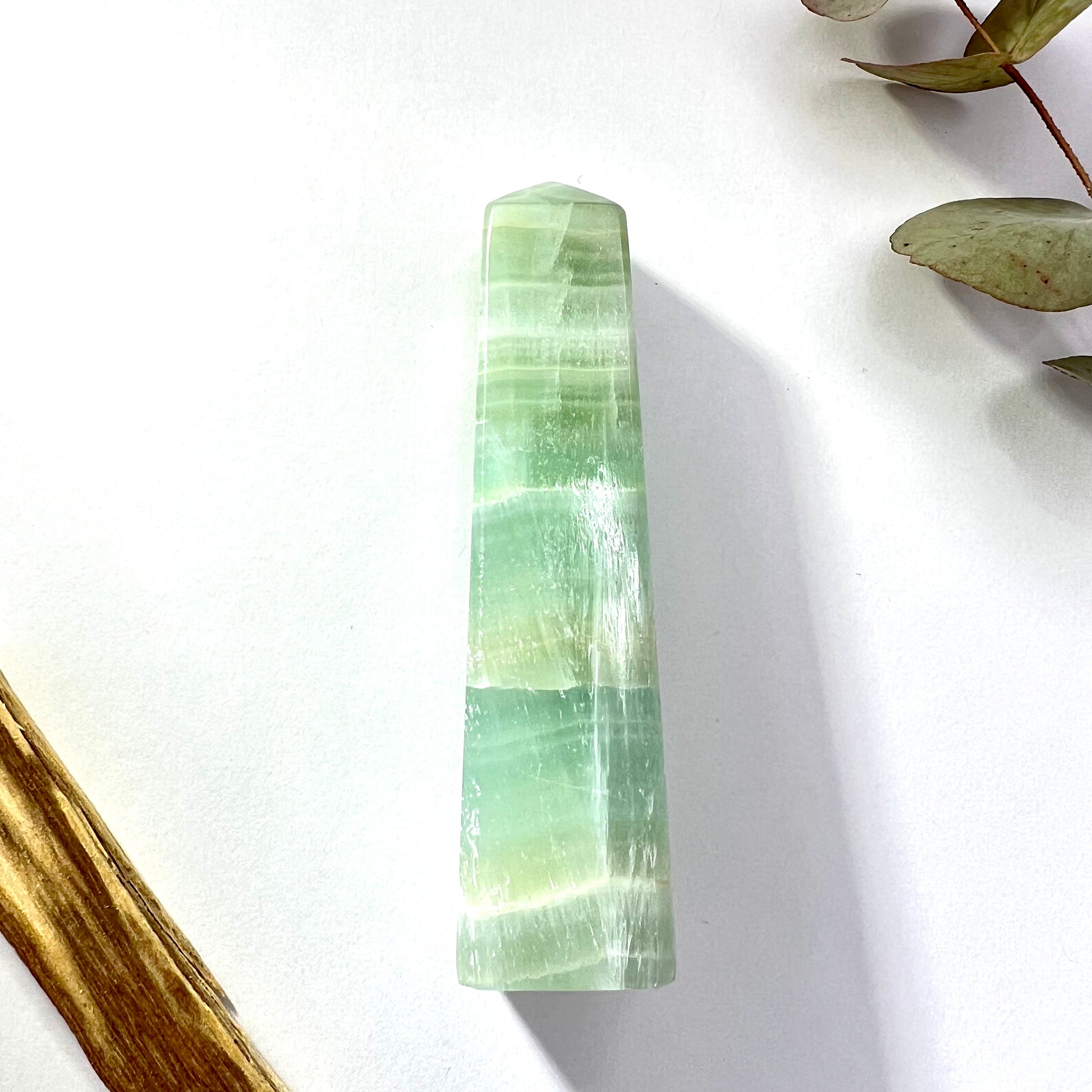 Pistachio Calcite is a soft, pale green variety of calcite, found primarily in Mexico and often occurring near other calcium-rich minerals like aragonite, dolomite, and gypsum // Its smooth color and gentle energy mirror its emotional effects, offering steady support during times of change, healing, and heart-opening.