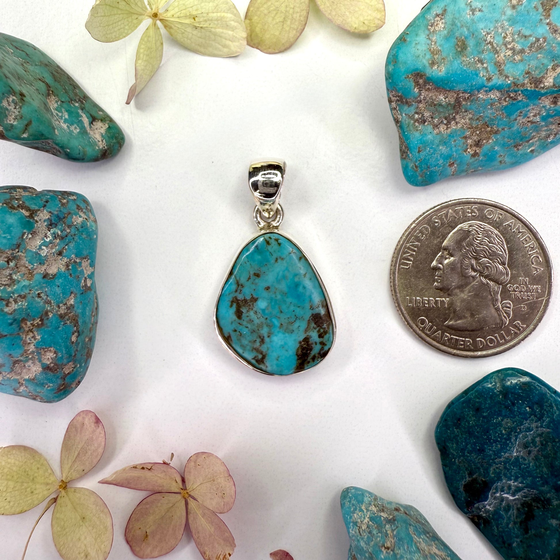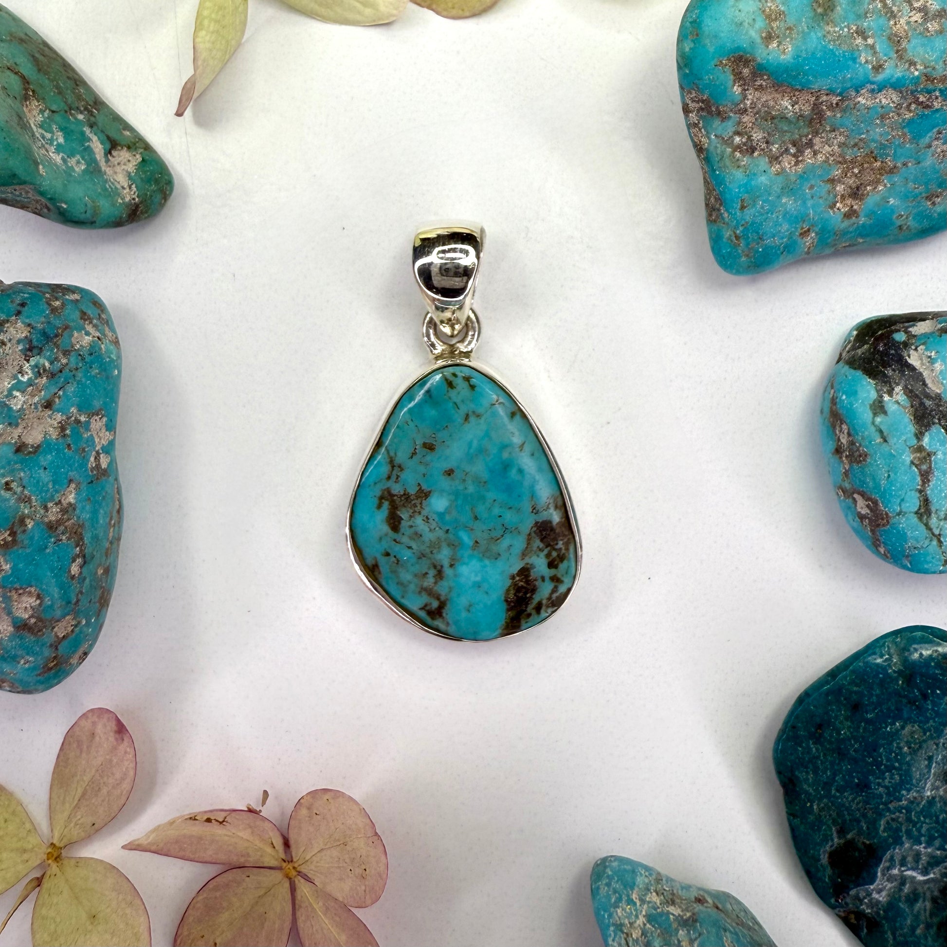 Turquoise // A revered and timeless mineral known for its striking blue-green hues and deep connection to protection, wisdom, and spiritual growth // A hydrous phosphate of copper and aluminum, this stone forms in arid regions through a unique combination of water, copper, and other minerals // Found in the USA (especially Arizona and Nevada), Iran, Tibet, and Mexico, Turquoise often occurs alongside Malachite, Chrysocolla, and Azurite, all of which share its copper-rich origins.